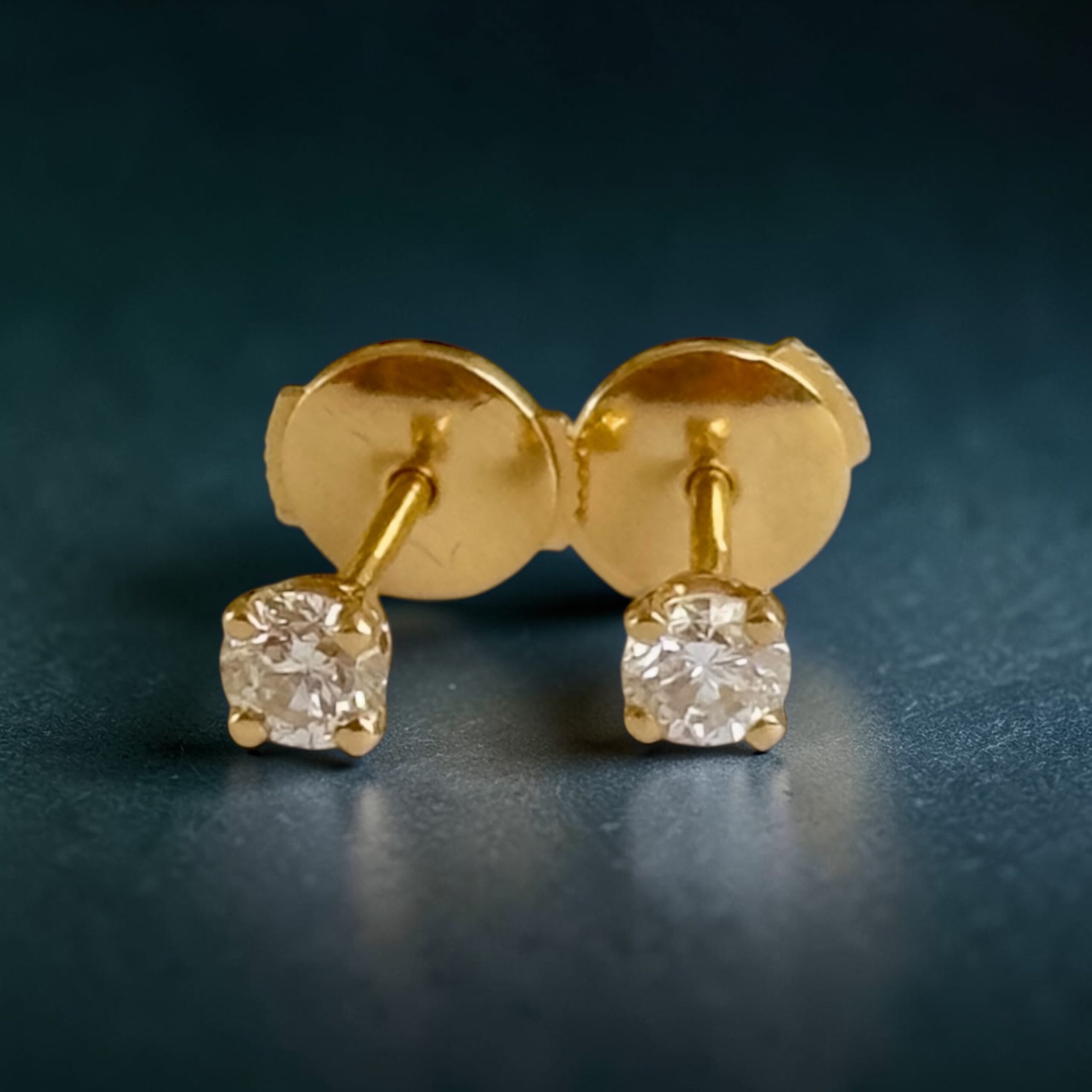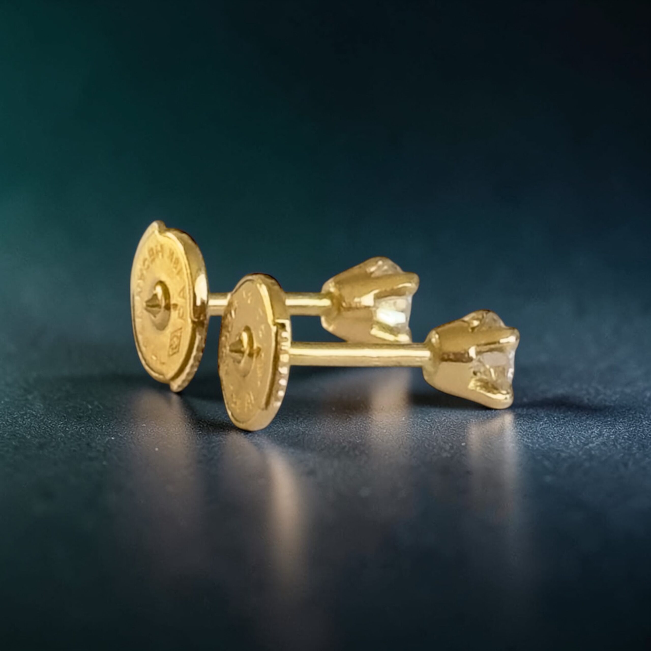 Ces élégantes puces d’oreilles en or jaune 18 carats mettent en valeur deux diamants naturels soigneusement sertis, offrant un poids total d’environ 0,30 carat. Chaque diamant, d’environ 0,15 carat, présente une belle luminosité, estimée en couleur H et pureté SI, garantissant un excellent équilibre entre éclat et finesse.