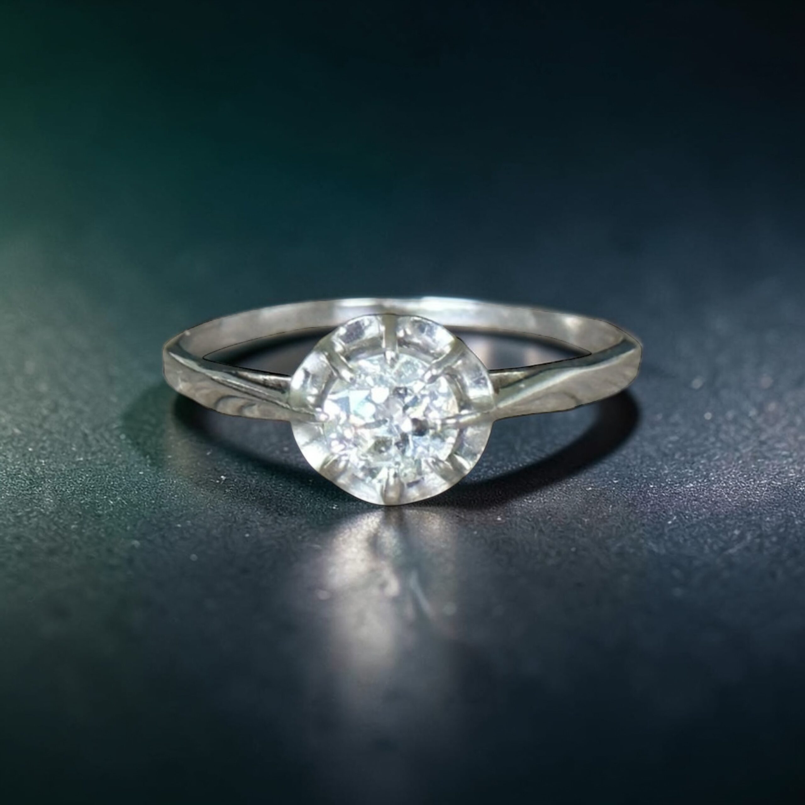 Solitaire diamant 0.50 carat or blanc 18 carats – bague ancienne serti illusion
